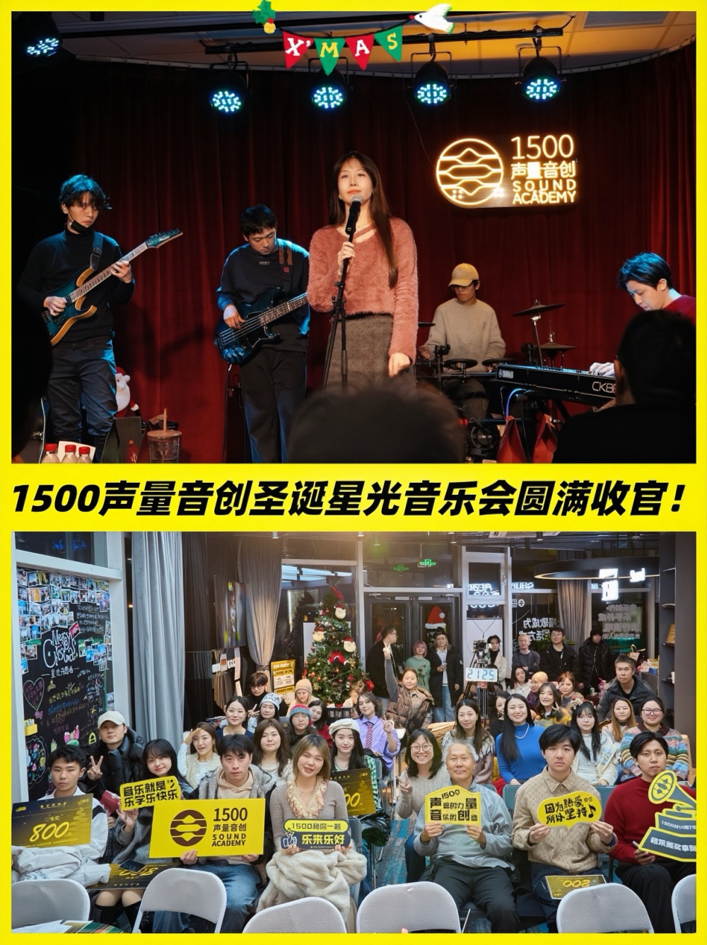 当街道挂满彩灯,当橱窗飘出圣诞旋律,我们相聚在1500声量音创,用一场温暖的星光音乐会,为2025年的学习时光画下闪亮的注脚。