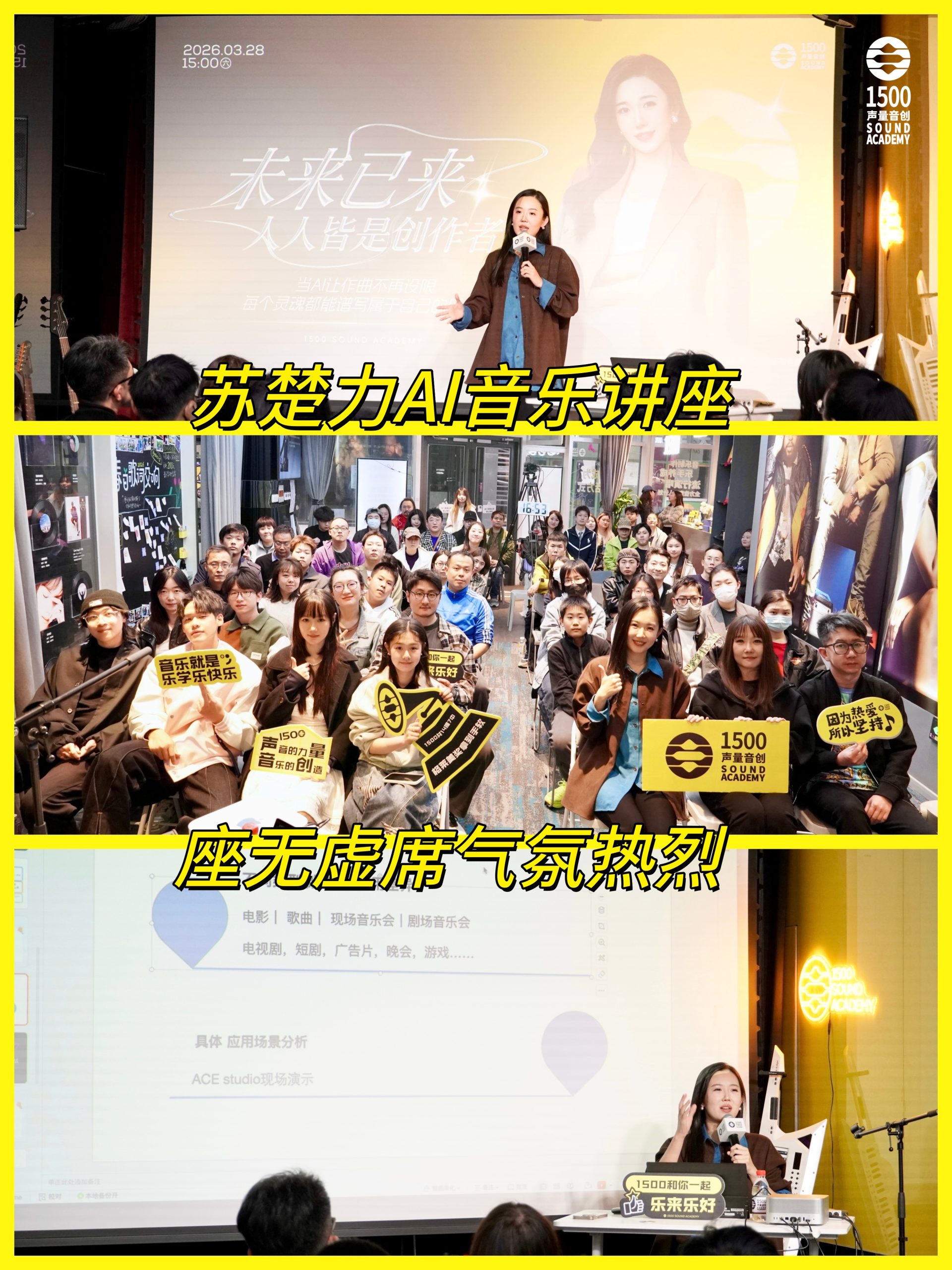 本周六,知名AI音乐博主、AI音乐教育者——苏楚力老师,在1500声量音创北京校区带来了一场精彩纷呈的AI音乐讲座。